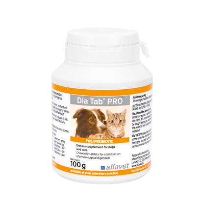 Dia Tab® PRO restores balance to the intestinal flora, protects the intestinal mucosa, stabilizes digestion and can thus support the immune system. The chewable tablets can also be used to rebuild the intestinal flora after antibiotic treatment.