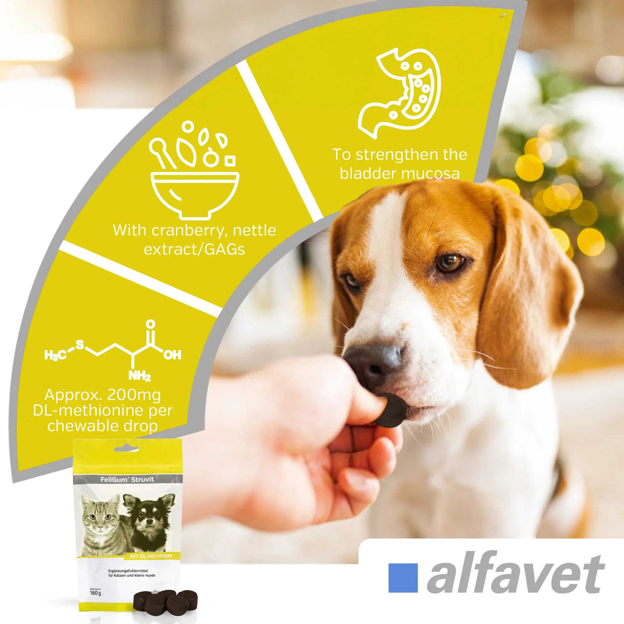 FeliGum® Struvit contains additional cranberry and nettle extract.