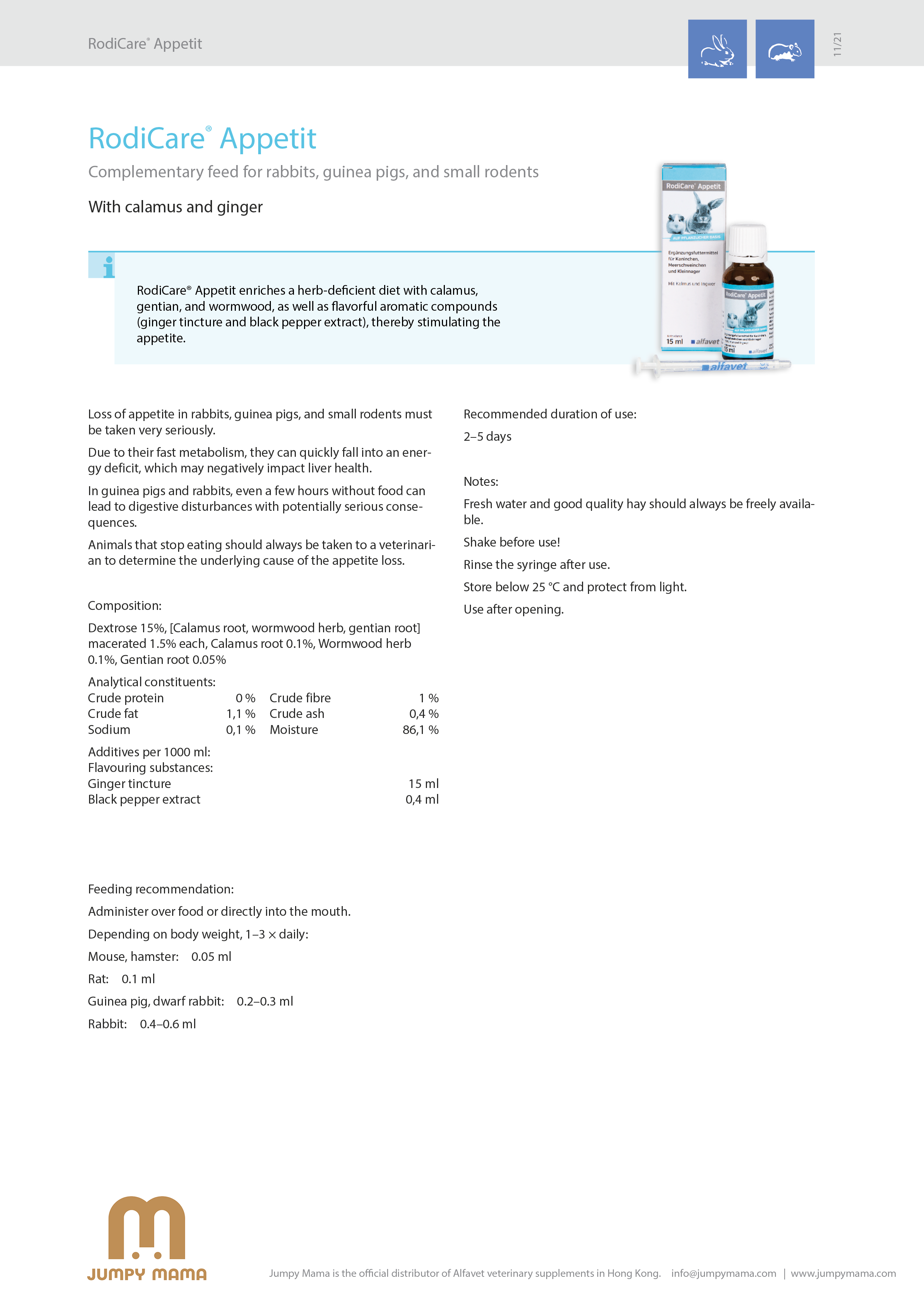 When a small animal starts to eat less, RodiCare® Appetit can stimulate its appetite and make it willing to eat again.