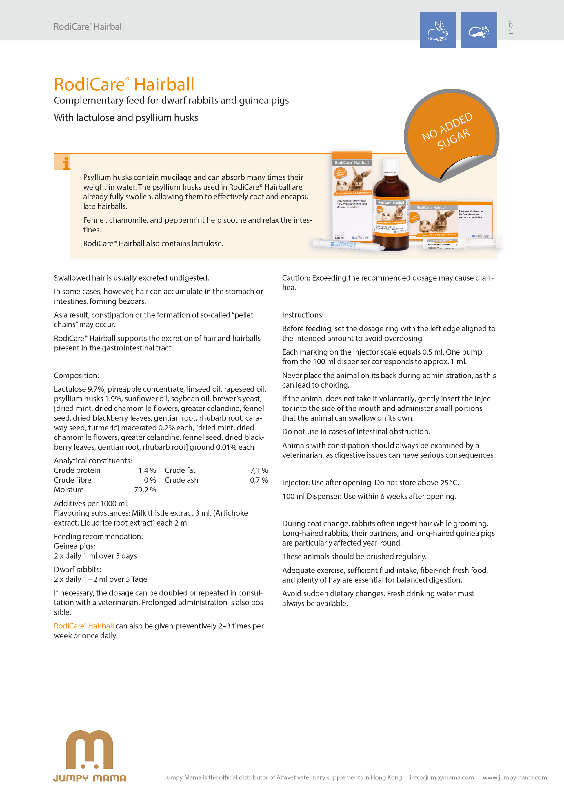 RodiCare® Hairball supports the excretion of hair and hairballs present in the gastrointestinal tract.