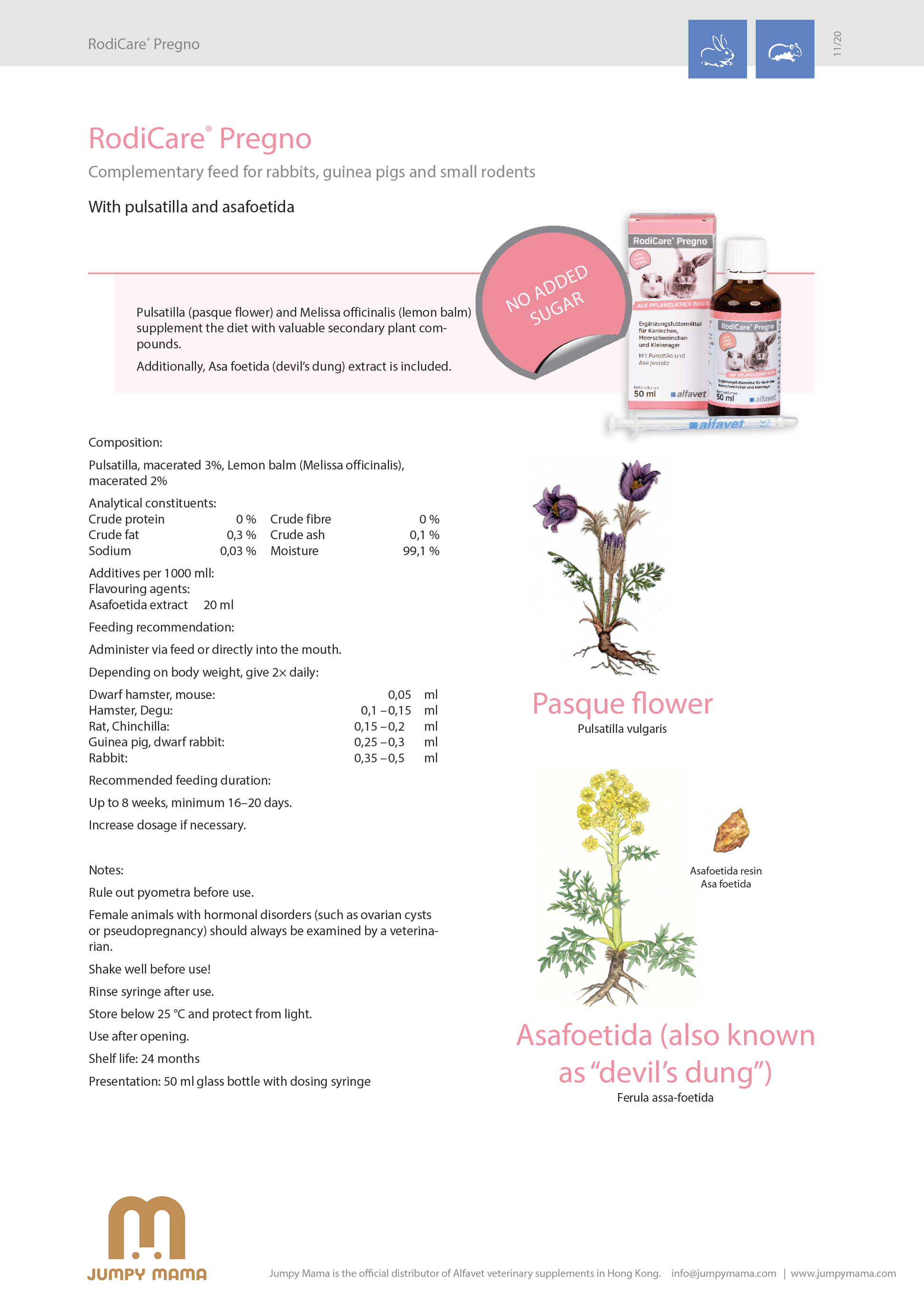 Takes into account special nutrients for female rodents whose hormonal balance is out of balance and can contribute to harmonisation in sham pregnancies. Supported: